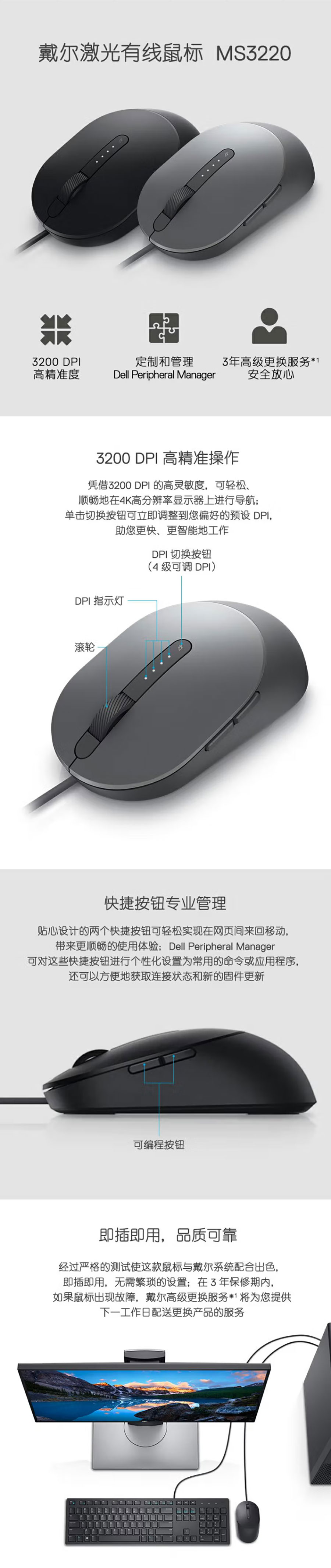 戴尔激光有线鼠标 - MS3220 助您实现更加高效智能化的办公体验。